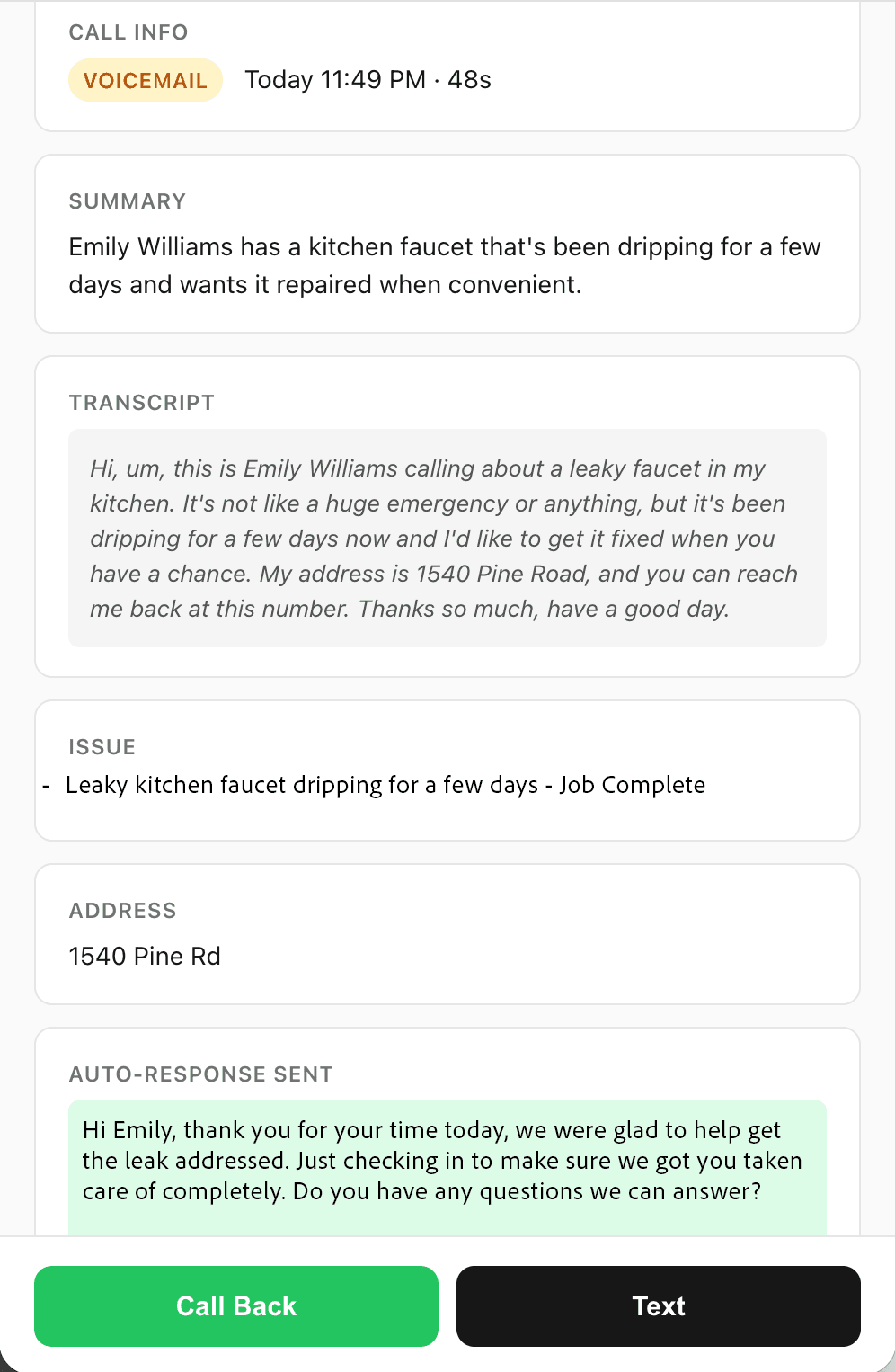 Speed. Handled responds to calls and texts immediately, gathering you a full summary, and increasing your booked jobs by up to 25%